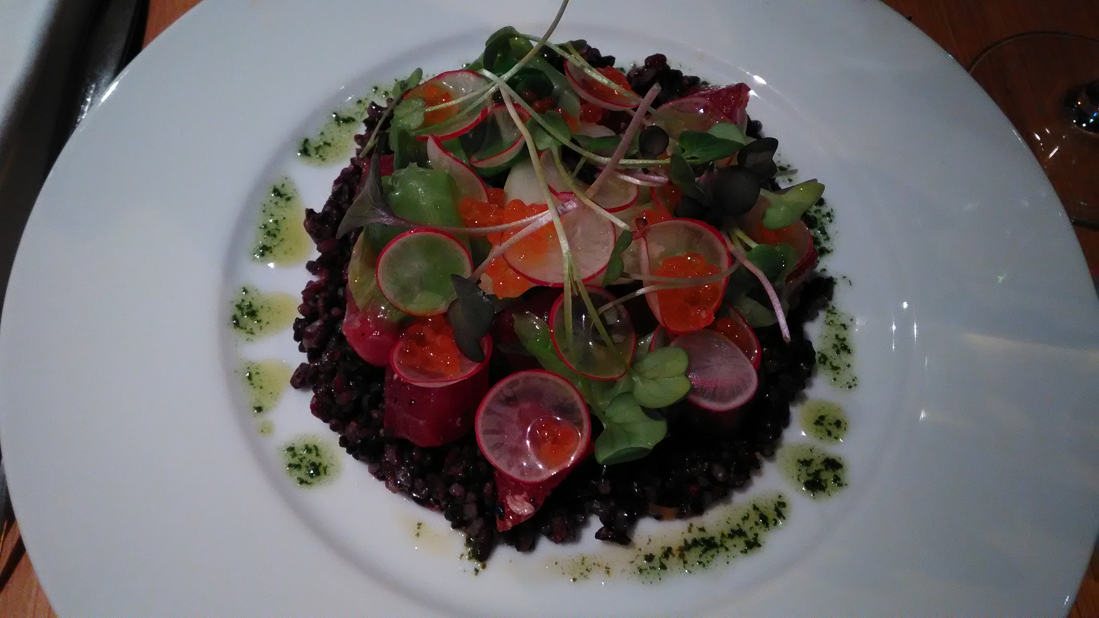 Produits frais et bien assemblés. Manque de saveurs au-delà de la texture des produits. Assemblages, goûts, peu tranchés. Ensemble correct, mais pas de twist. Dommage.
