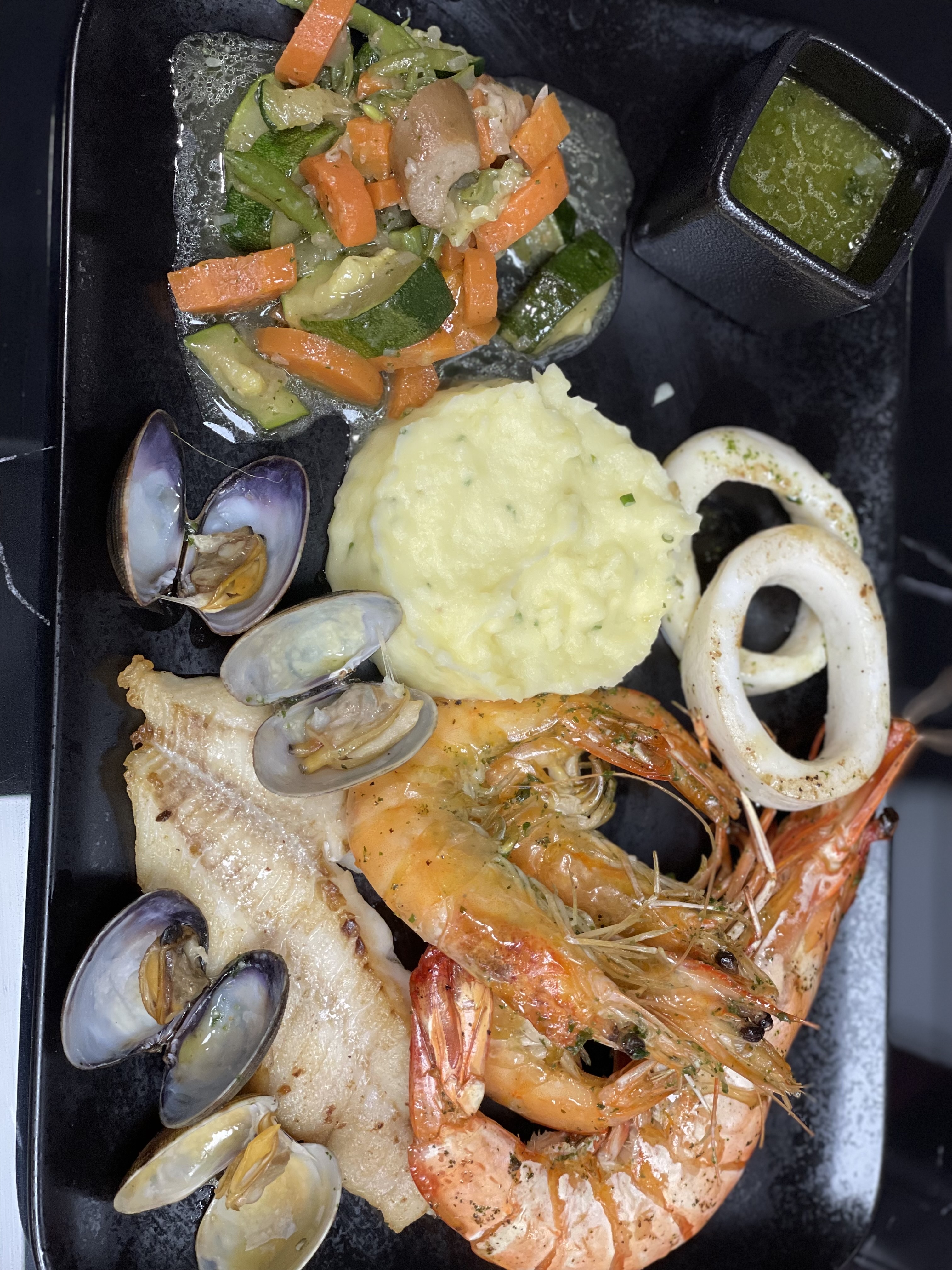 Très belle expérience menu de poissons et de fruits de mer fournis.