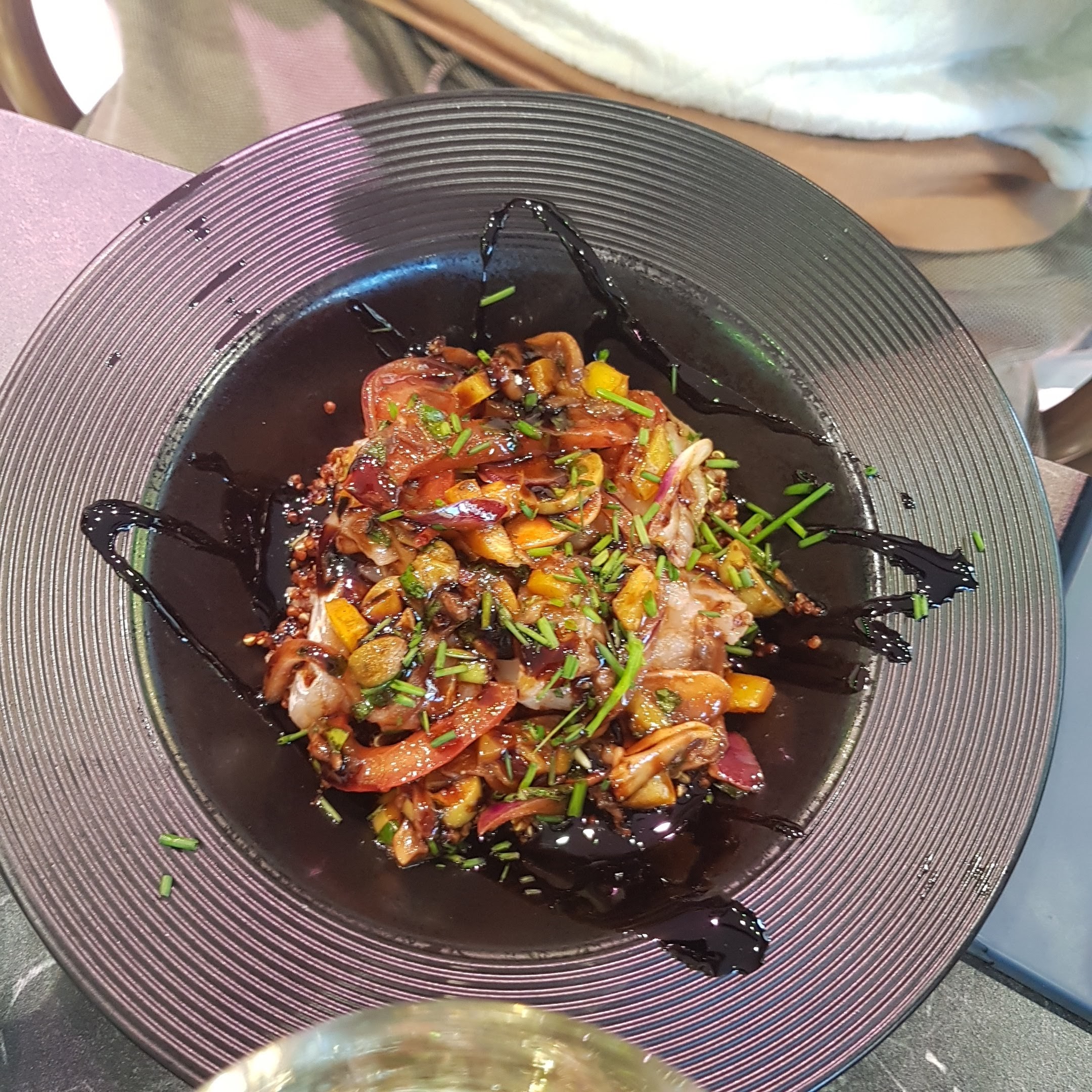 Nous n'avons pas fini nos plats : Le thon snaké ressemblait plus à un thon panné aux sésame avec l'intérieur pas cuit du tout L'espadon était super salé et difficilement mangeable. Sans parler des garnitures que nous avons à peine entamés. Bref très mauvaise soirée. Nous ne reviendrons pas.