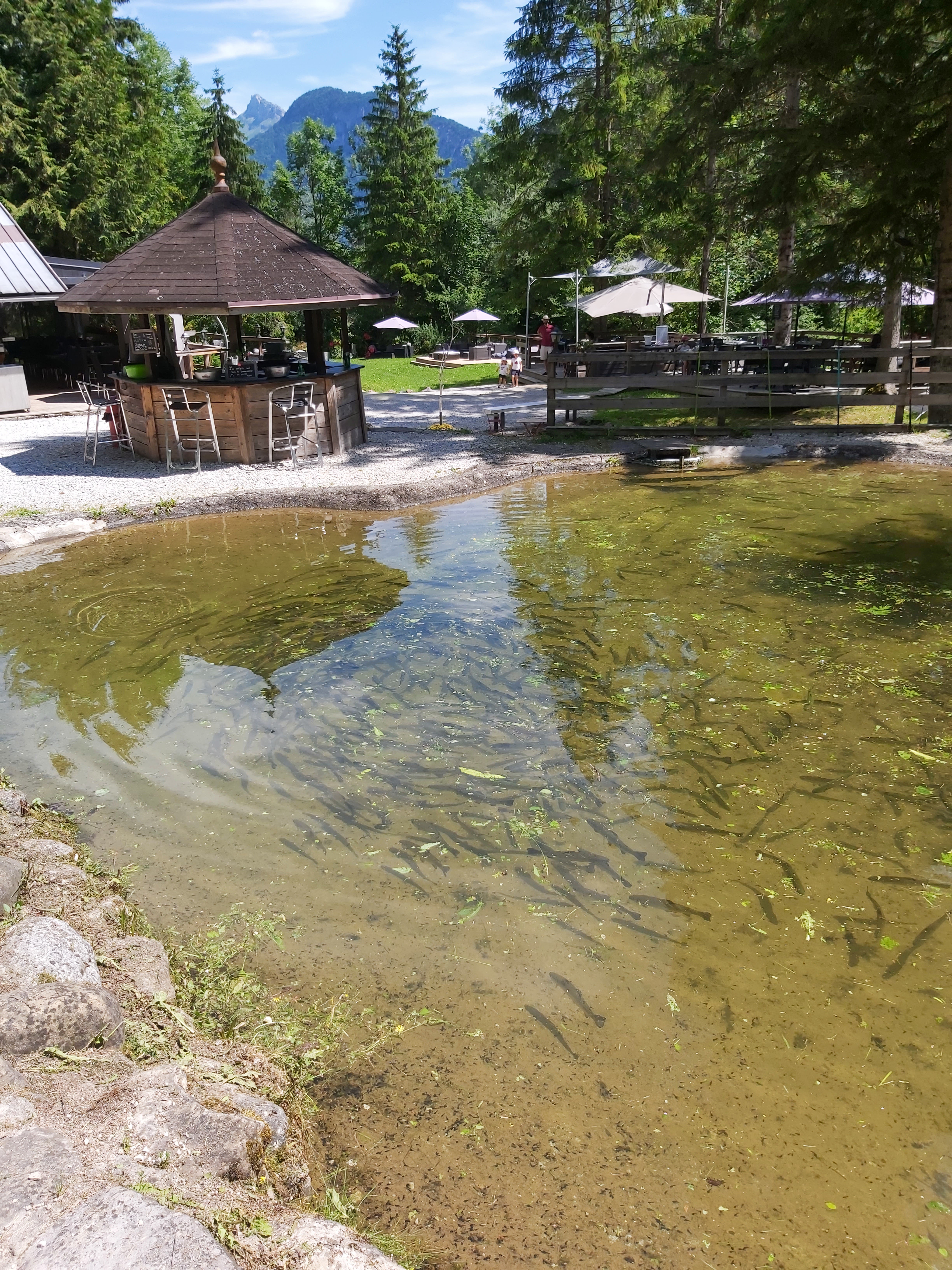 Si vous aimez la truite, ce restaurant est fait pour vous! Fumée, rillettes, filets, un vrai régal pour les yeux et le palais. Et si vous n'êtes pas poisson, pas de soucis, vous trouverez de quoi vous satisfaire ! La possibilité de pêcher son propre poisson rend le concept original, vous pouvez le relâcher (les enfants adorent) ou l'acheter. Pour les enfants, il y une belle aire de jeux pour les occuper entre deux plats. Et les desserts sont à tomber, beaux et bons!