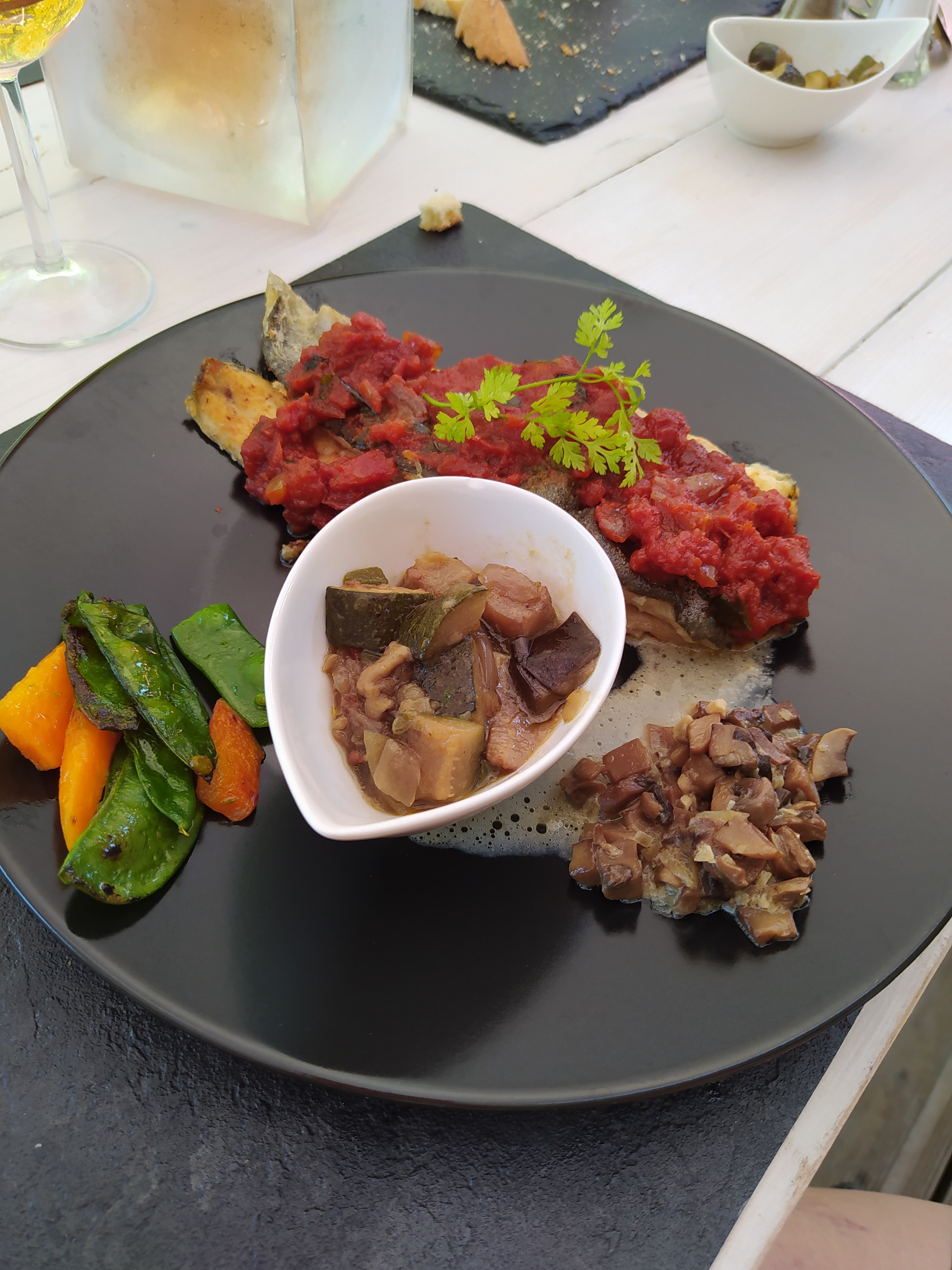 Très bon poissons, la cuisine est excellente. Les jours de chaleur, terrasse très chaude pour manger. Cependant de beaux espaces ombragés après repas.