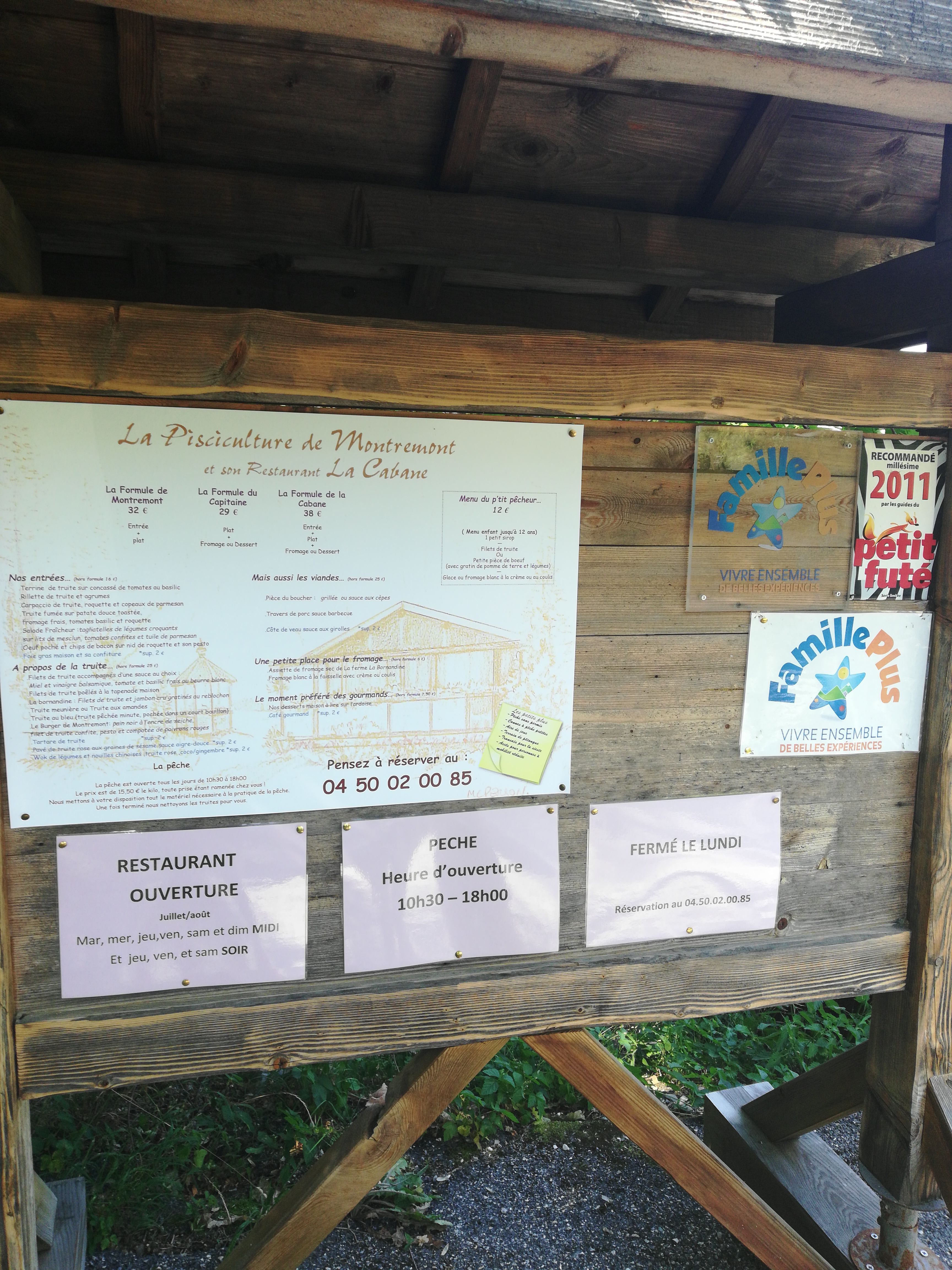 Plats délicieux et lieu reposant. Plats composés pou la majorité de truite, mais possibilité de choisir de la viande ou des plats sans truite. Il est possible de pêcher la truite, ce que les enfants apprécient particulièrement. Lieu très calme et très frais l’été.