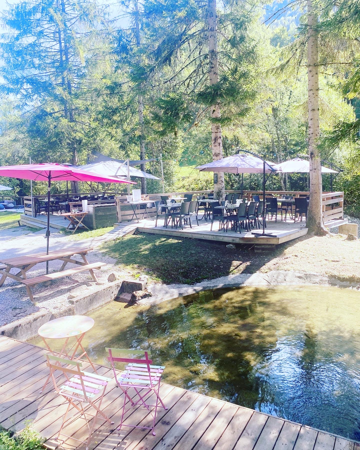 Endroit tres sympa . Restaurant dont la spécialités est la truite..possibilite de faire la sieste sur les transat mis à notre disposition. Une bonne adresse