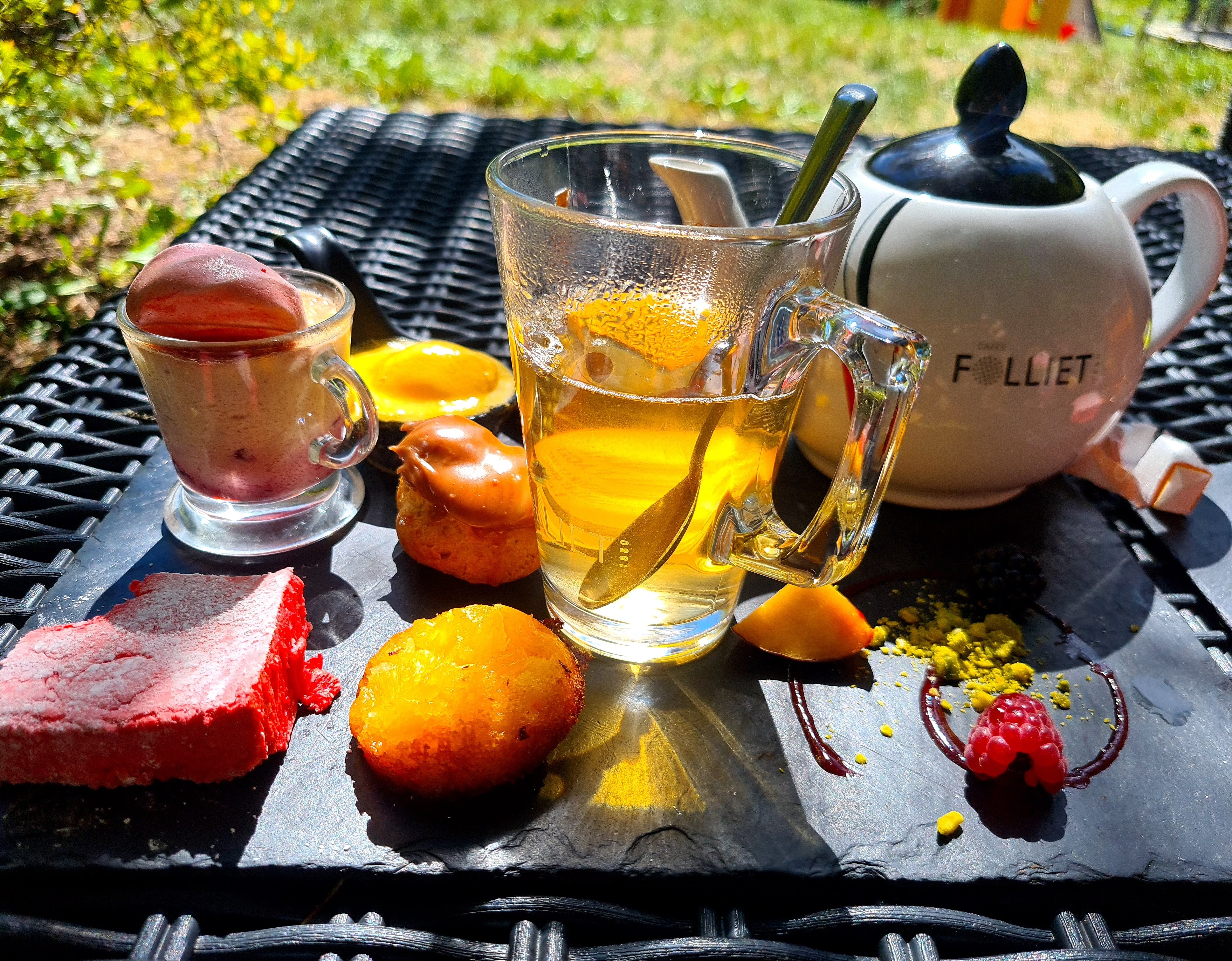 Notre rituel de l'ete avec le carpachio tartare et le cafe gourmand sur le salon a l'ombre et les jeux pour enfants et pour finir la peche pour les enfants merci !!
