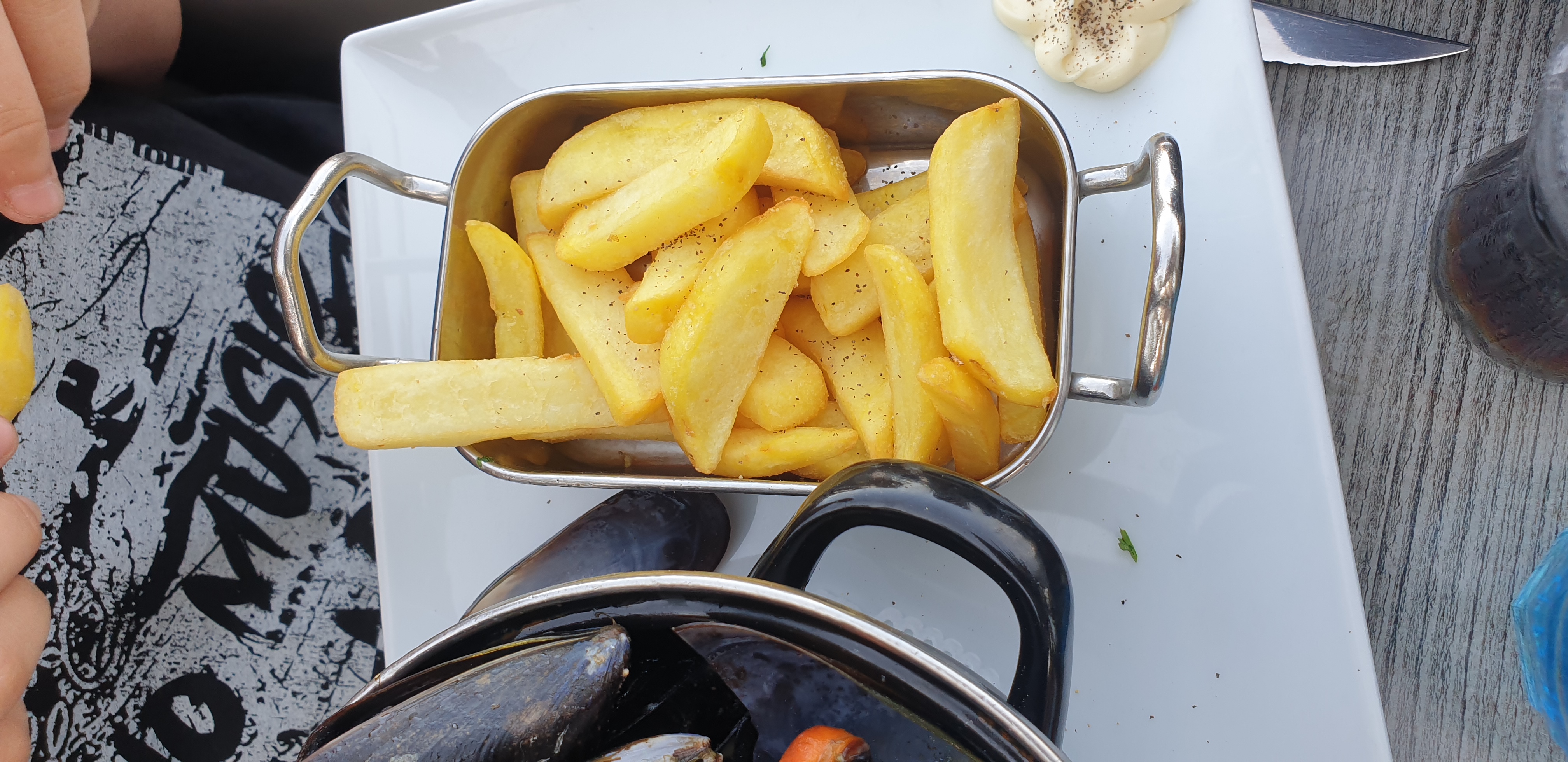 Resto super sympa, l'équipe était très accueillante. Concernant le repas, les moules très bonnes, c'est vrai que les frites il n'y en a pas énormément mais il y a ce qu'il faut en moules. Manque juste du Nutella sur la gaufre 😄 Sinon tout était très bien.