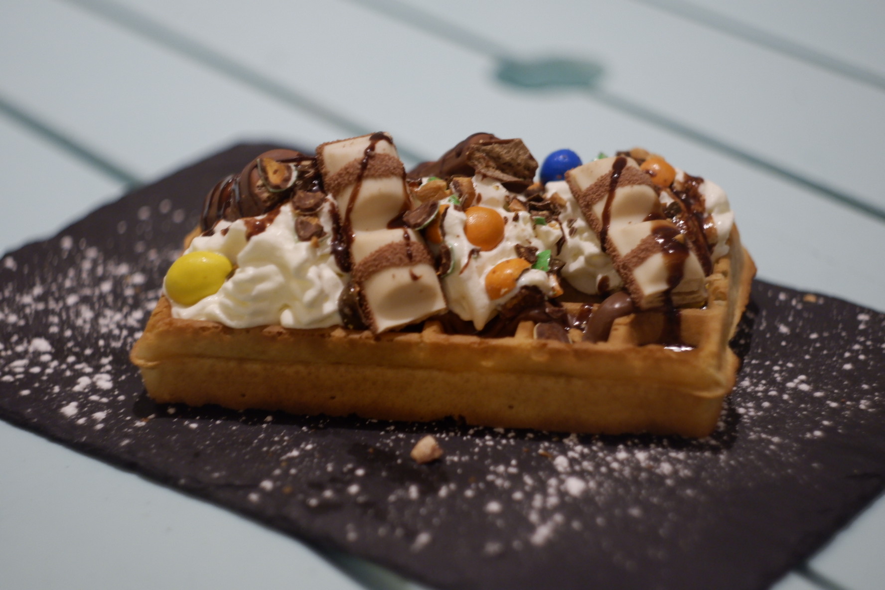 Attendre plus d’une heure et demie pour une assiette de moules et un « pavé de saumon », je vous laisse voir l’assiette, du riz dur et collant ainsi qu’une salade qui laisse à désirer. Le seul point positif sont les gaufres.